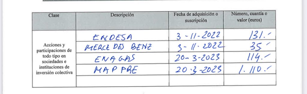 Mapfre no es la única empresa privada en la que el edil decidió invertir dinero. También compró acciones de las energéticas Enagás y Endesa, además de la empresa alemana comercializadora de vehículos de alta gama, Mercedes-Benz.